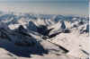 By At 4:30 a bright red rescue helicopter arrived. But just as we became airborne, the chopper pilot received an emergency radio call from Rogers Pass. Before we knew it we were turning around as the chopper had to scurry off to bring back the body of a French snowboarder caught in an avalanche at Rogers. In its place a larger 212 Bell helicopter was called in to take us on our own odyssey to Chatter. The flight in at first seemed anti climatic at first as we followed the flat Columbia River Valley northward. Then, a big flood plain came into view and the chopper kept on steering north. Suddenly ahead there appeared a cluster of a mountain range. We pointed towards a high pass, where it started snowing. As we flew over it, a few logging slashes appeared up ahead, then I spotted a few signs of mankind, a small lodge and some snow cats. It was an incredible sight as suddenly there was a little nest inhabited by people, virtually in the middle of nowhere. I do not think there was a permanent residence within a hundred kilometers.